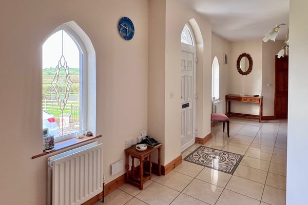Spacious entrance hall with tiled floor and cloakroom
