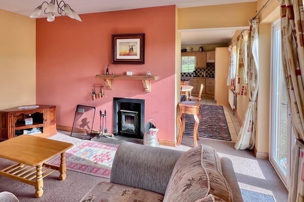 Lounge with tiled floor and multi fuel stove